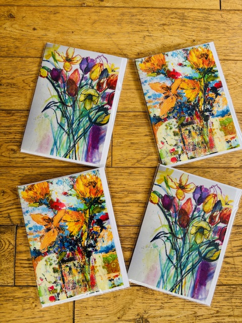 Flower Card Designs – Set 1, 4 different flower cards from the images of Caroline’s paintings, £12.