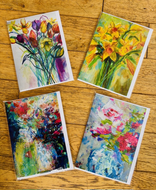Flower Card Designs – Set 2, 4 different flower cards from the images of Caroline’s paintings, £12.