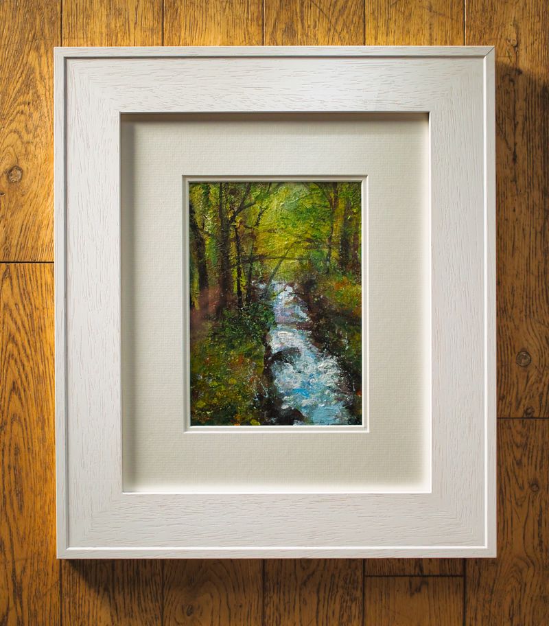 / ‘Meandering Stream, Rouken Glen, Acrylic on board, 44cm x 39cm including professional white frame, £260