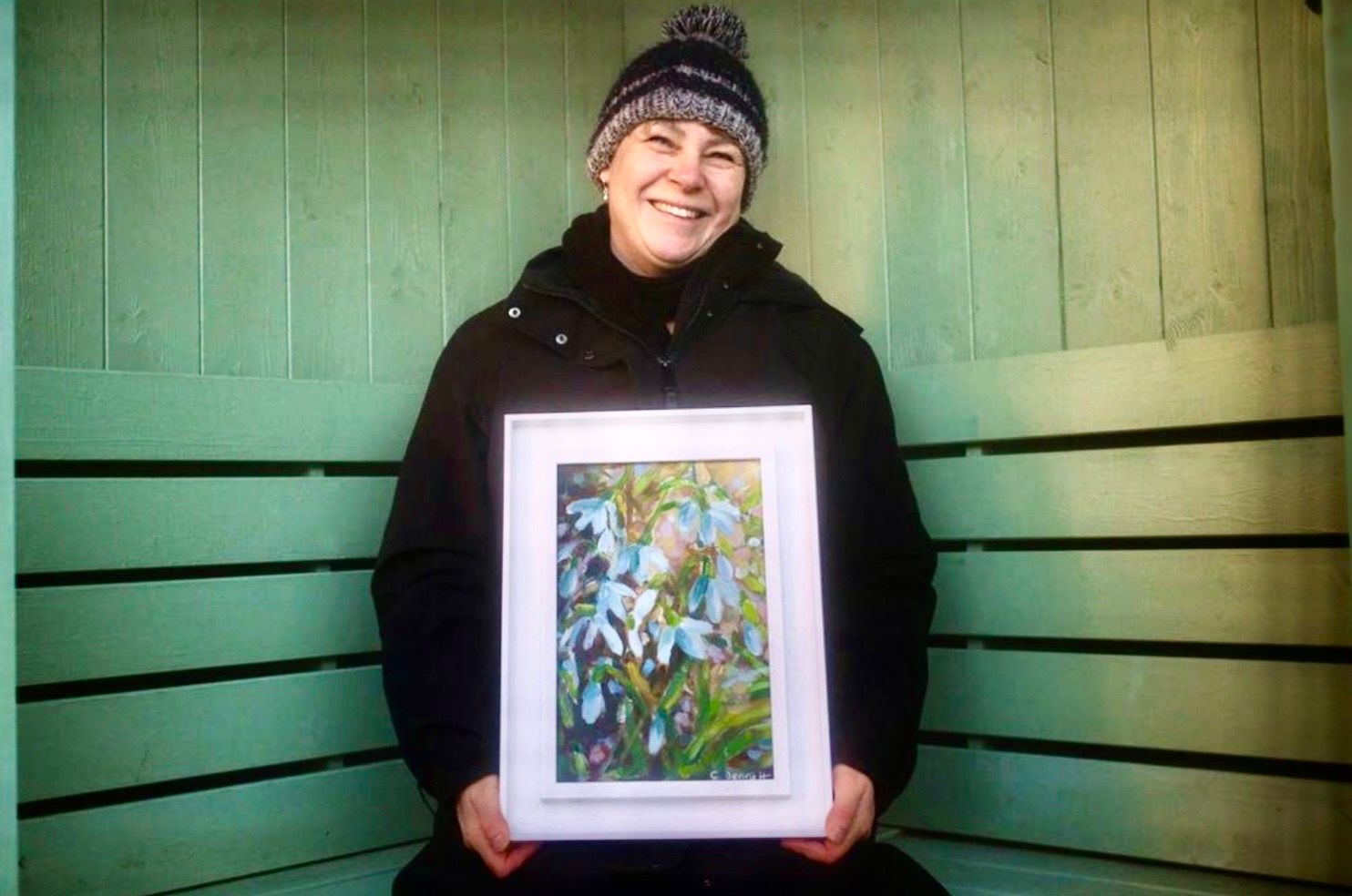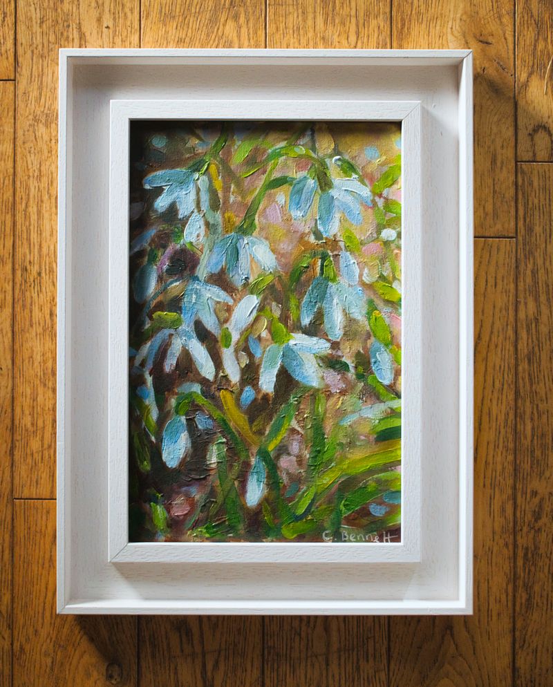 ‘Snowdrops’, oil on canvas, professionally framed in white, 40cm x 30cm. £260 plus postage or free local delivery or collection from the studio.