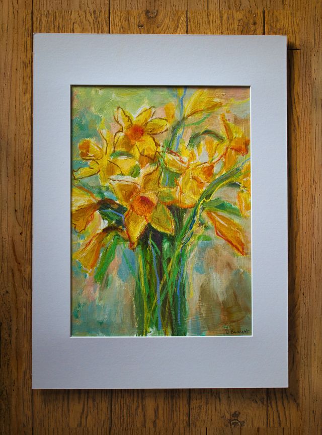 ‘Spring Daffodils’, mixed media on paper, 30cm x 43cm including mount, £110 plus postage or free local delivery or studio collection.