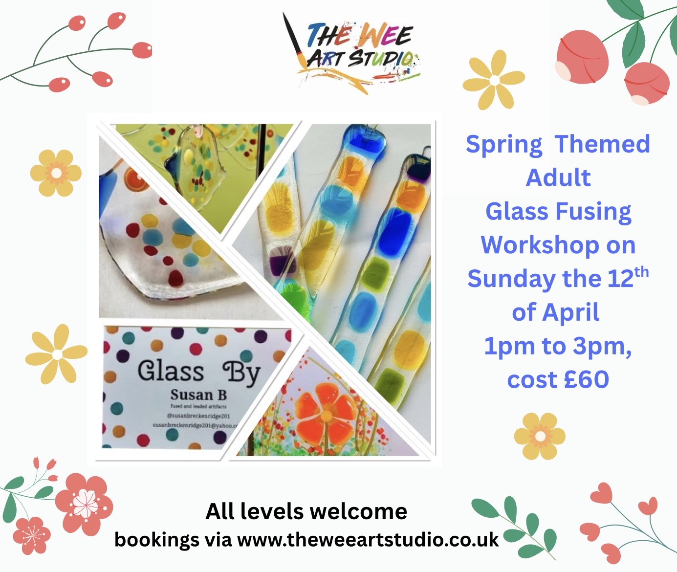 Sunday Adult Taster Workshop – Spring Themed Fused Glass Workshop, Sunday 12th of April @ 1pm to 3pm, all levels welcome, cost £60.